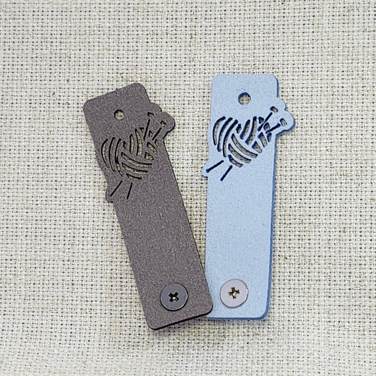 Étiquettes pour tricot - Ceur balle de laine bleu et gris