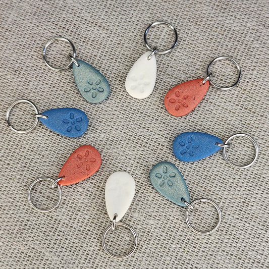 Gouttes avec fleur terracotta, perle, bleu, vert métallique