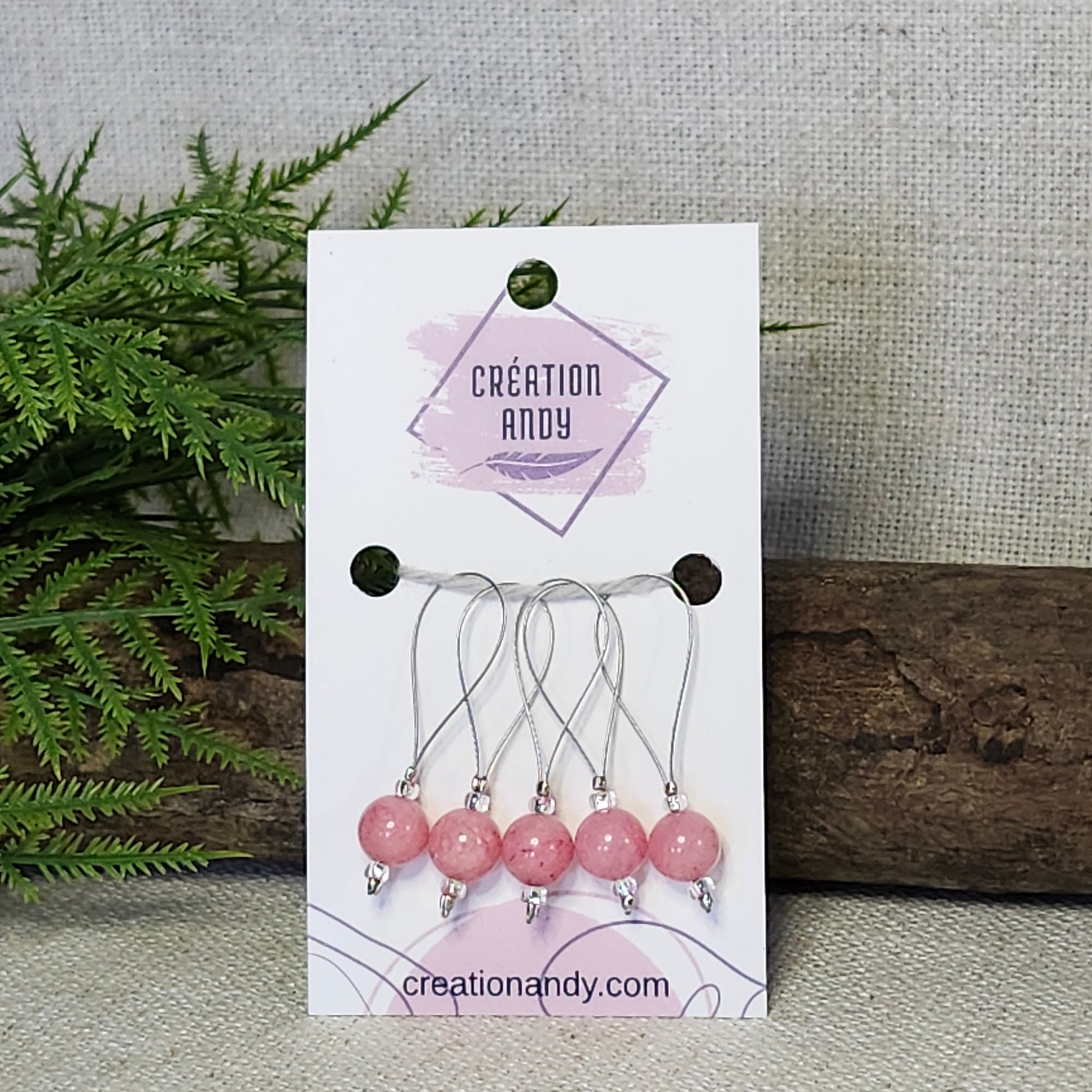 Chaque marqueur est orné d’une bille en Jade pêche de 8 mm, apportant une touche élégante et unique à votre tricot. De légères variations peuvent être observées, chaque pièce étant assemblée à la main.