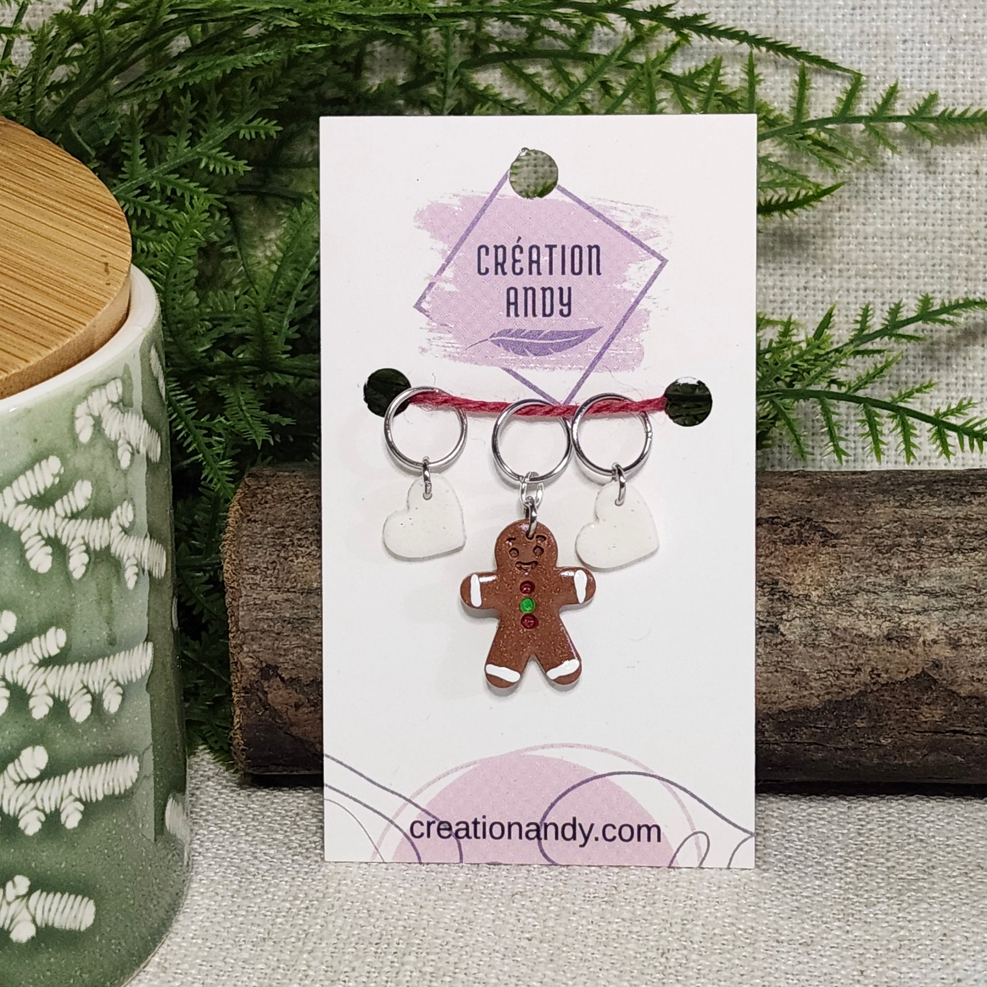 1 marqueur principal (bonhomme en pain d'épices verni, env. 20 mm / 0,75 po – longueur totale env. 32 mm / 1,25 po)