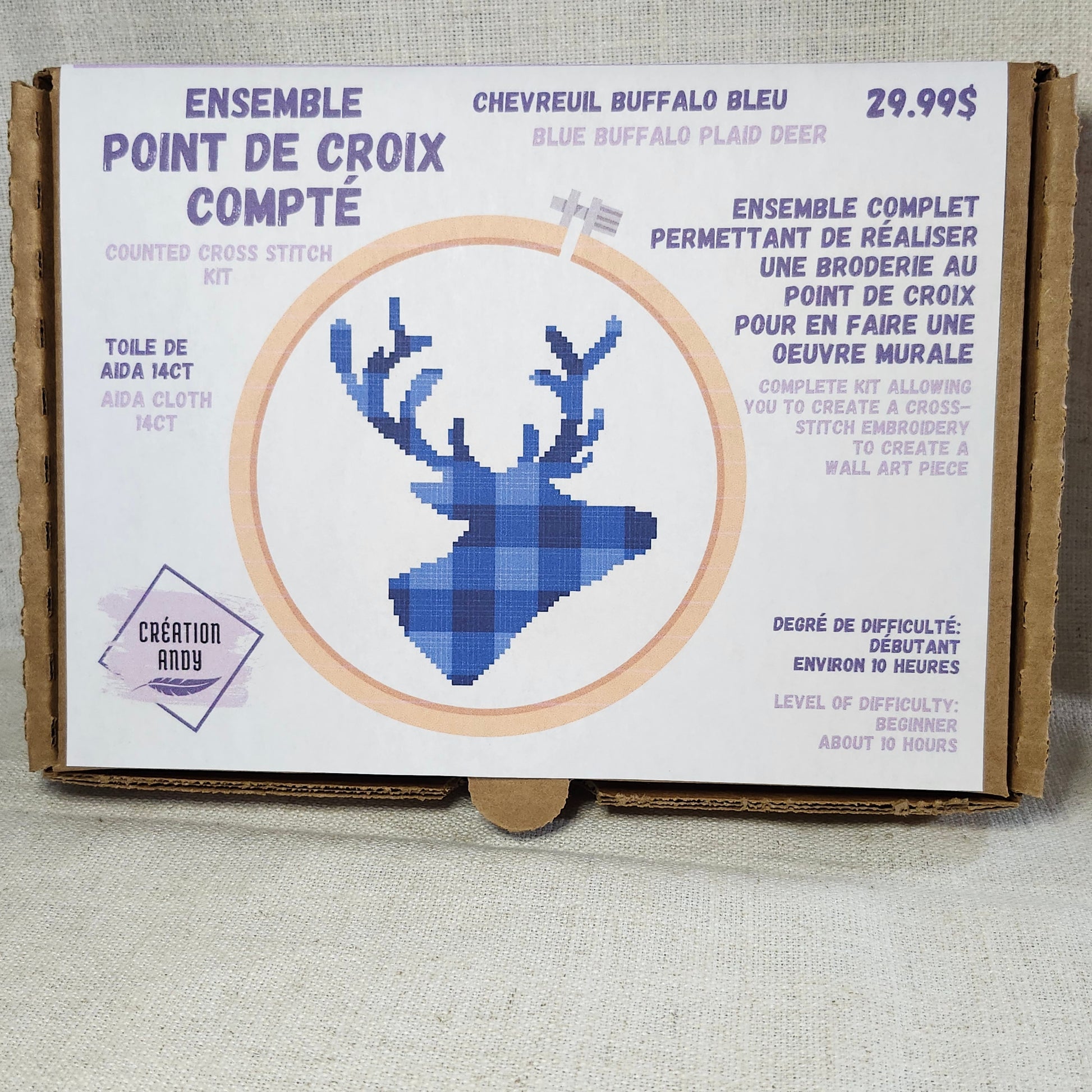 Modèle Chevreuil Buffalo bleu – Broderie au point de croix