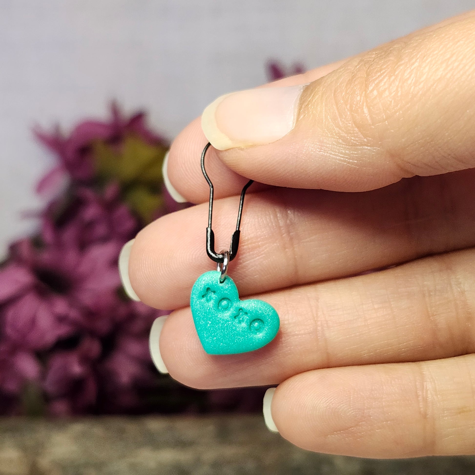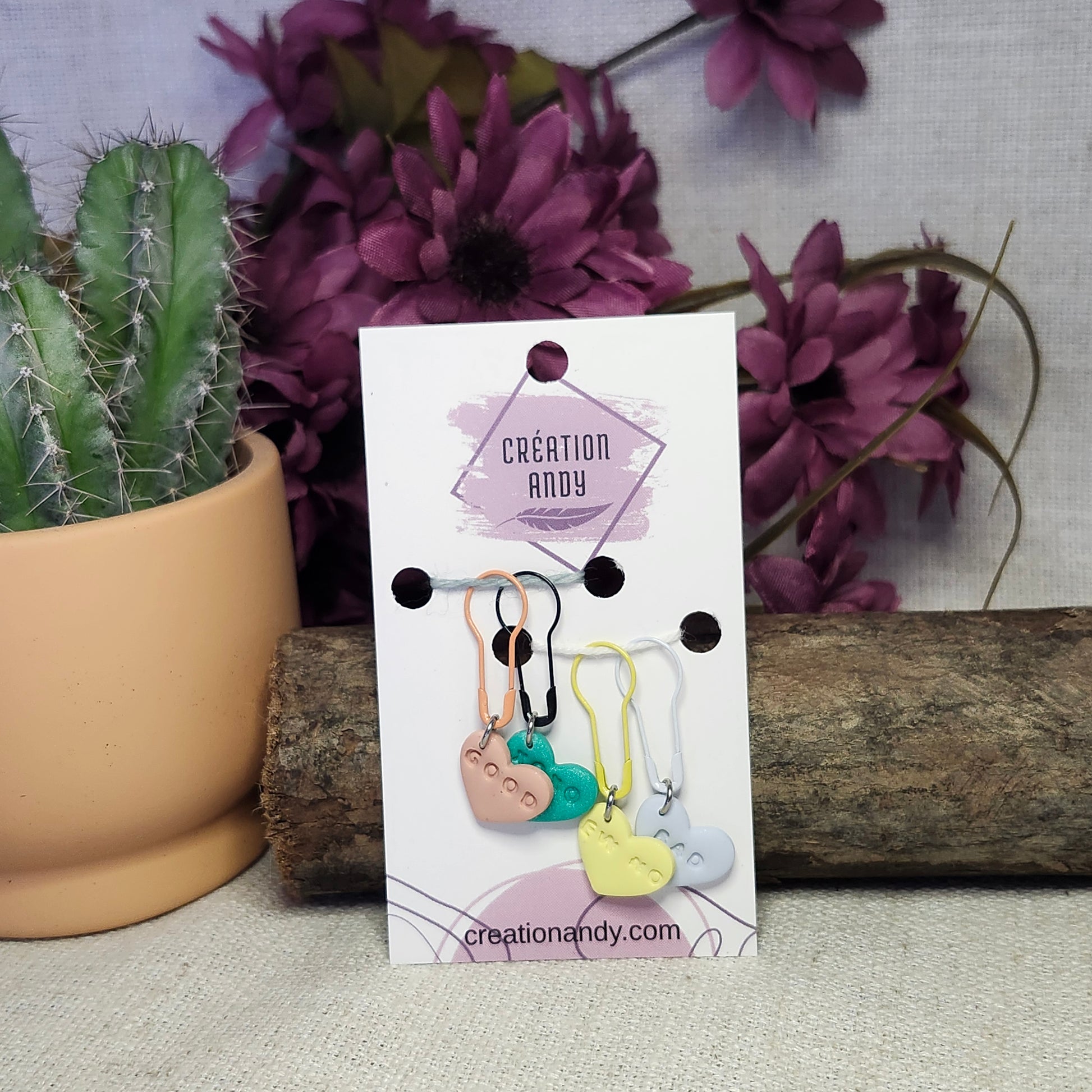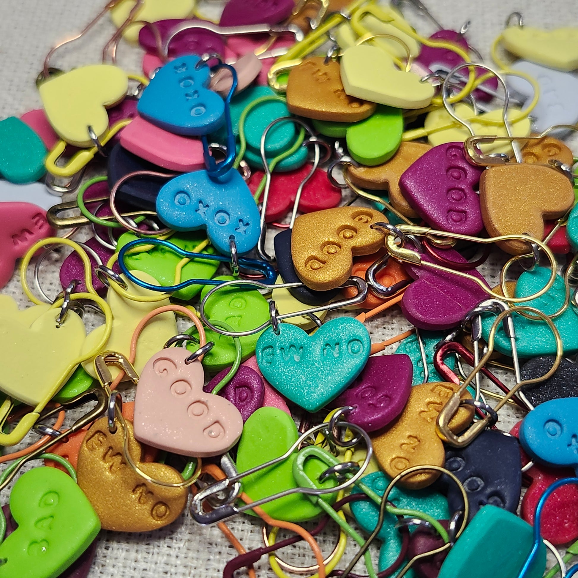 Les coeurs ''bon coup'', ''mauvais coup'' peuvent être utilisés comme marqueur de progression, marqueur amovible, reprendre une maille échappée, marquer un erreur ou un bon coup, ou simplement comme marqueur!
